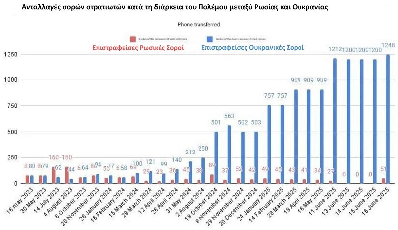 Το ακόλουθο γράφημα εξηγεί γιατί. Αυτό το γράφημα δείχνει τον αριθμό των ανταλλαγών ρωσικών σορών με ουκρανικές σορούς από την έναρξη της Ειδικής Στρατιωτικής Επιχείρησης: