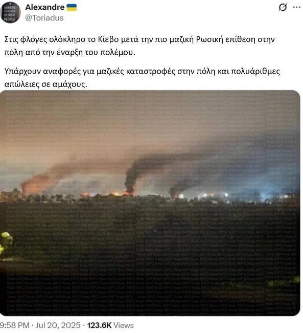 Ας προχωρήσουμε τώρα στο ότι η Ρωσία εξαπέλυσε για άλλη μια φορά μία από τις μεγαλύτερες επιθέσεις του πολέμου χθες το βράδυ – τουλάχιστον σύμφωνα με φρενήρεις Ουκρανούς σχολιαστές οι οποίοι, ομολογουμένως, θα μπορούσαν να υπέρ-δραματοποιούν τα πράγματα για να κερδίσουν τη συμπάθεια: